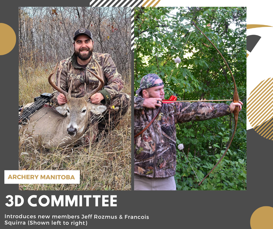 The Archery Manitoba 3D Committee is pleased to announce the appointment of two new members . Jeff Rozmus  and  Francois Squirra have been appointed to committee positions, both with terms ending in May 2024. Both committee members bring a depth of experience and knowledge that will benefit our 3D community in Manitoba.  Jeff has been involved in shooting and hunting for many years and is currently the Manager of Heartland Archery in Winnipeg. Francois is an experienced 3D traditional archer, bowhunter and bowmaker living in the western Manitoba community of Roblin, where he leads a local club.