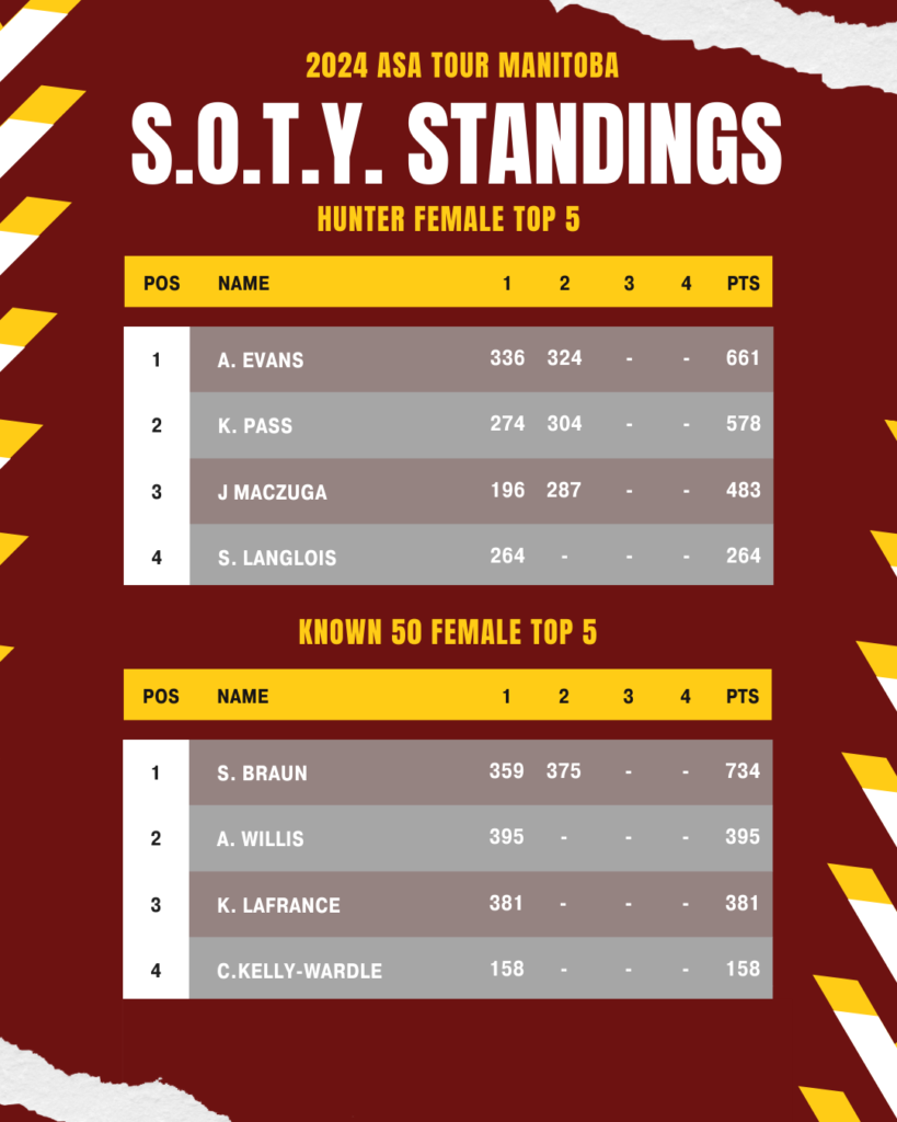 Central to the event’s success were the excellent venue, the host club’s dedication, and the volunteers’ invaluable contributions. The well-planned course provided a challenging yet enjoyable experience for all participants, while the positive efforts of volunteers ensured that every aspect of the event ran smoothly, leaving no archer disappointed. Archery Manitoba would like to specifically thank the host club, SMASH, and its volunteers. Special mention to the club leaders and on-site event volunteers Myles Meir, Garett Lewandoski, Brian Schnell, Donald Johnson, Richard Marshall, Brian & Kim Gibbons, and Randy & Margeret Neuls. The club and Archery Manitoba would also like to thank Scott McMunn and his staff at McMunny’s Restaurant for keeping the archers fueled.