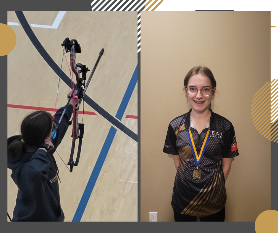 Saturday afternoon was the Team Event, where I was partnered with Madelynn Holkema, who has represented Canada at the 2023 World Youth Championships. I had some nerves but was very comfortable since we had practiced this type of event during team practices and at the camp. My practice ends were okay, but not great. Everything felt better once I scored two 10s in my first round of scoring. We made it to the finals, which ended up tied after the 4 ends. In the shoot-off, my arrow was the closest to the centre, so my partner and I won first place.