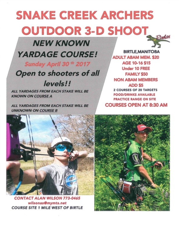 « All EventsThis event has passed.Outdoor 3D – Snake Creek ArchersApril 30, 2017 @ 8:30 am - 5:00 pm« Interlake Archers – Double 720Interlake Archers – Double 720 » Add to calendar Google Calendar iCalendar Outlook 365 Outlook Live Details Date: April 30, 2017 Time: 8:30 am - 5:00 pm Venue Snake Creek Outdoor Range Birtle,ManitobaR0M 0C0CanadaOrganizer Snake Creek Archers Phone 204 773 0465