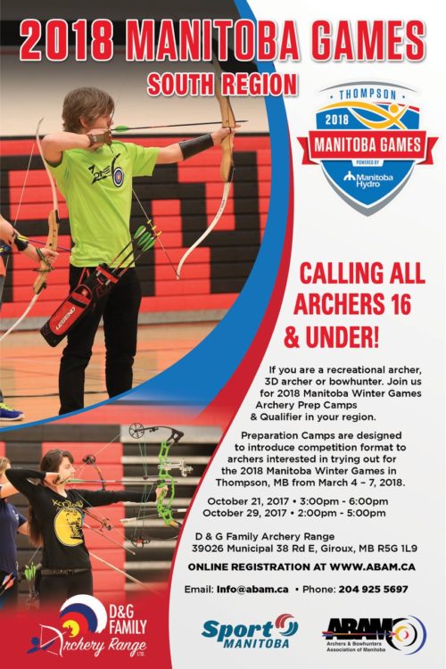 The South Region Prep Camps will be hosted at D & G Family Archery Range in Giroux, MB on the following dates: