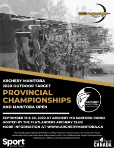 ![]() 2020 Outdoor Provincial Target Championships & Manitoba Open Flatlanders Archery Club is proud to host the 2020 Manitoba Provincial Target Championships & Manitoba Open on September 19 & 20 at the Archery Manitoba Sanford Range. Guests are welcome (Manitoba Residents Only), but you must be an Archery Manitoba Member to participate in championship ranking (medal… |