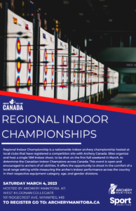 ![]() The Regional Indoor Championship is a nationwide indoor archery championship hosted at local clubs that have registered a competition site with Archery Canada. Clubs and Provincial Archery Organizations organize and host a single 18 M Indoor shoot, to be shot on the first full weekend in March, to determine the Canadian Indoor Champions across Canada.… |