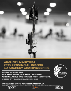 ![]() Join the Heartland Archery Club as they host the 2023 Archery Manitoba Indoor 3d Provincial Championships in Landmark, Manitoba on Sunday, April 16th. The event is open to all members and guest members competitive and recreational archers. PLEASE NOTE: The location of the event has changed from Lorette, MB to the Landmark Arena in Landmark,… |