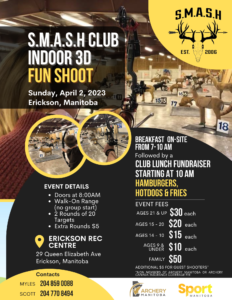 ![]() The South Mountain Archery Shooters and Hunters (S.M.A.S.H) are proud to host their first indoor 3D shoot since 2019. The club is excited to re-launch its annual events and club activity in the Erickson region, with the support of many new volunteers. Show your support for this great club, by attending one of Manitoba's limited… |