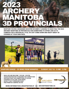 ![]() Archery Manitoba and the Flatlanders Archery Club are proud to host the 2023 Manitoba 3D Provincial Open Championships on Sunday, July 16, 2023. Out-of-province guests are welcome, but you must be an Archery Manitoba Member to participate in championship ranking (medal standings). Online Pre-Registration is mandatory for all competitive shooters – Registration for competitive archers… |