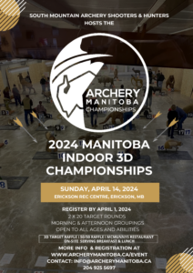![]() Join the South Mountain Archery Shooters & Hunters Club (SMASH) as they host the 2024 Archery Manitoba Indoor 3d Provincial Championships in Erickson, Manitoba on Sunday, April 14, 2024. This event is open to archers of all ages and abilities! The club is also hosting a 3D Target Prize Raffle and a 50/50 Raffle. McMunnys… |