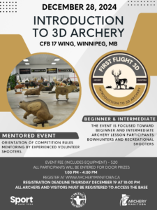 ![]() Brandon Indoor Winter Classic is on Jan 4 and Jan 5, 2025 New this year - two courses on 3D targets; one is the ASA target round, and the second is the typical 3D target round. New this year is a dedicated youth set of targets. A maximum of 15 yards is great for the… |