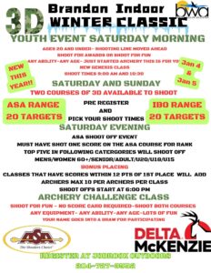 ![]() Brandon Indoor Winter Classic is on Jan 4 and Jan 5, 2025 New this year - two courses on 3D targets; one is the ASA target round, and the second is the typical 3D target round. New this year is a dedicated youth set of targets. A maximum of 15 yards is great for the…  |