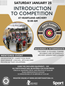 ![]() Archery Manitoba, in partnership with Heartland Archery, is proud to announce our second ‘First Flight’ event of the 2024/2025 Indoor Season. This event is designed for beginner & intermediate archers of all ages participating or who have recently participated in Archery Lessons or club activities. The event will provide an easy-to-follow orientation on the rules…  |